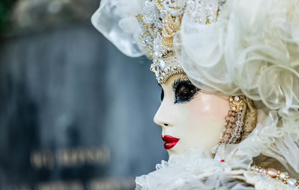 Dès votre arrivée, plongez dans l’élégance et la grandeur des costumes vénitiens. Chaque participant façonne à la main son costume, garantissant une diversité impressionnante. Certains costumés, si passionnés, nous font même le plaisir d’en porter un différent chaque jour. Tous les costumes sont réalisés avec une telle rigueur qu’aucune partie du visage ne sera visible. Une part de mystère s’ajoute ainsi à cette expérience. C’est cette exigence dans le façonnement des costumes et l’organisation des parades qui rend cet événement d’autant plus riche et fascinant.
